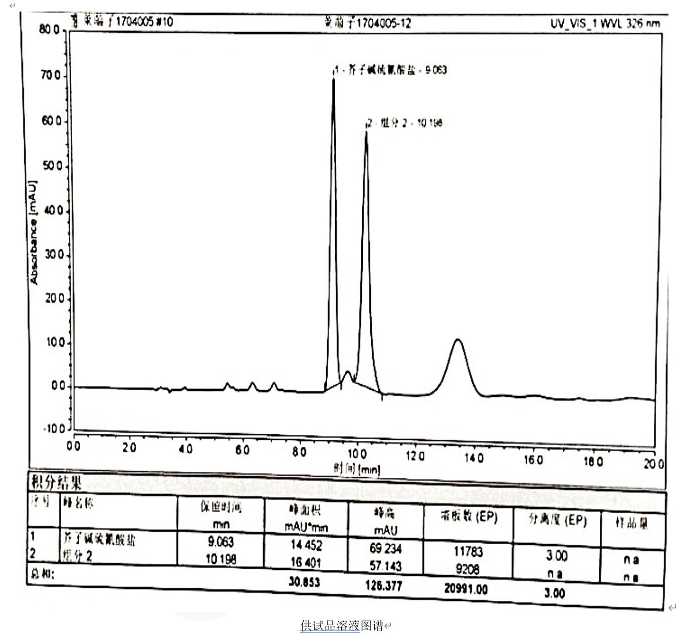 色譜柱:Titank Phenyl-Hexyl 5μm 250×4.6mm(貨號:FMG-5552-EONU) 流動相:乙腈-3%冰醋酸溶液(15:85)