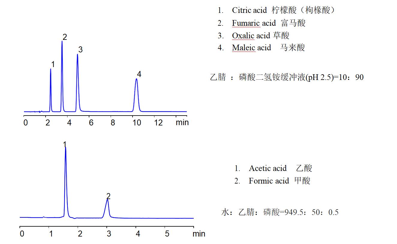 Comixsil HAX 分析草酸、檸檬酸、馬來(lái)酸、富馬酸、甲酸及乙酸等一元,二元, 三元有機(jī)酸