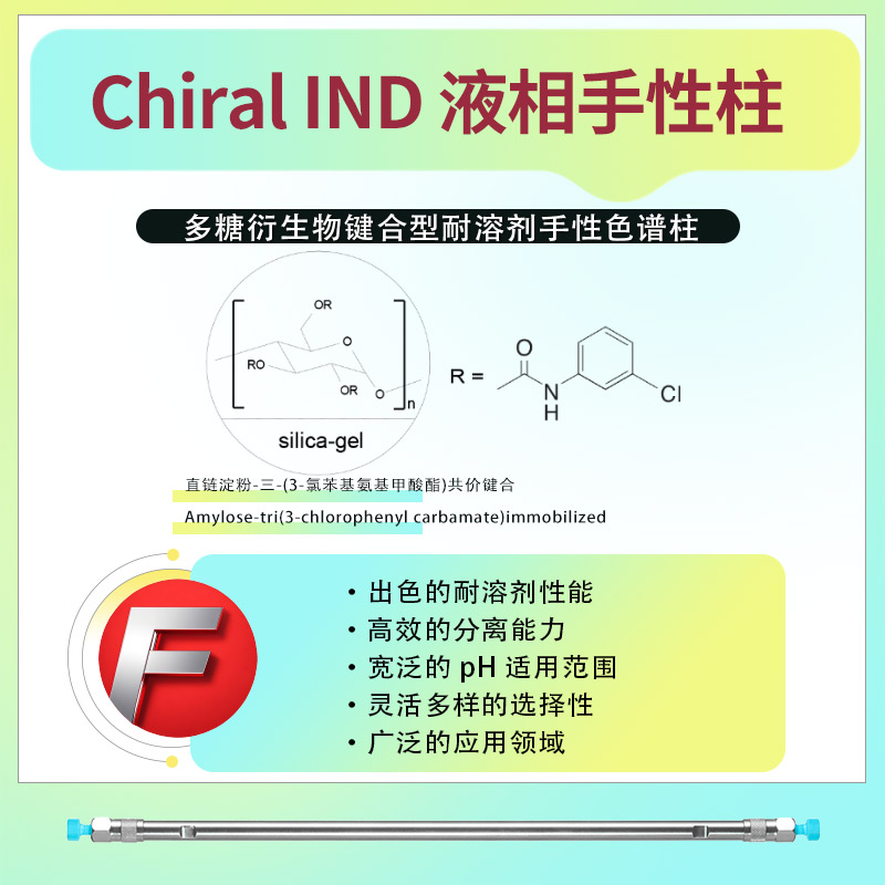 FLM Chiral IND 鍵合型耐溶劑手性柱 Chiral IND 手性柱的固定相是將特定的手性選擇劑涂敷在硅膠表面構建而成。該手性選擇劑經(jīng)過菲羅門公司的專業(yè)研發(fā)與篩選,其結構能夠與手性化合物產(chǎn)生諸如 π - π 相互作用、氫鍵以及范德華力等多種相互作用,憑借這些作用實現(xiàn)對不同對映體的精準選擇性分離。 手性選擇劑獨特的分子構型賦予了該固定相出色的立體選擇性,面對眾多具有各異官能團和復雜結構的手性化合物,都能展現(xiàn)出卓越的分離效能。 一、溶劑兼容性 在正相色譜模式下,Chiral IND 手性柱展現(xiàn)出良好的適應性,能夠與多種常見正相溶劑和諧搭配,像正己烷、異丙醇、乙醇等都能作為其流動相的組成部分。一般情況下,以正己烷和異丙醇按不同比例混合作為流動相,通過靈活調(diào)整二者比例,可實現(xiàn)對不同手性化合物分離效果的優(yōu)化。 該手性柱對于含有少量極性改性劑的流動相體系也有一定的耐受能力,在一定程度上拓展了其應用場景。但在反相條件下,其兼容性相對受限,在實際應用中較少在反相模式下使用。 二、應用范圍 Chiral IND 手性柱在多個關鍵領域發(fā)揮著重要作用,如藥物研發(fā)、天然產(chǎn)物分析以及農(nóng)藥殘留檢測等。在藥物研發(fā)環(huán)節(jié),常用于手性藥物中間體和最終成品的對映體純度分析與分離工作,這對于保障藥物的治療效果以及用藥安全至關重要。例如,在抗腫瘤手性藥物的研發(fā)過程中,運用 Chiral IND 手性柱能夠精準地分離出具有活性的對映體,同時去除可能存在的無活性或有害對映體。 在天然產(chǎn)物研究領域,它可用于分離和鑒定具有手性結構的天然化合物,助力研究人員深入探究天然產(chǎn)物的化學結構和生物活性。在農(nóng)藥殘留檢測方面,能夠針對具有手性結構的農(nóng)藥開展對映體特異性分析,為環(huán)境監(jiān)測以及食品安全評估提供更為精準的數(shù)據(jù)。 三、供貨信息: